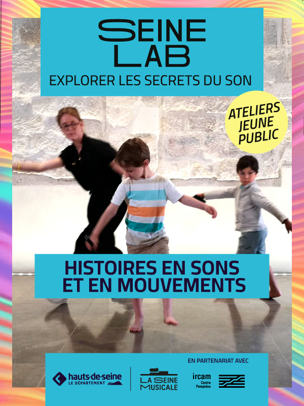 Dans la version narration de cet atelier, pensée pour les plus jeunes, les enfants sont invités à créer les paysages sonores d’une histoire contée par les médiateurs. Ce format vient développer leur motricité et leur conscience corporelle tout en favorisant leur imagination.
