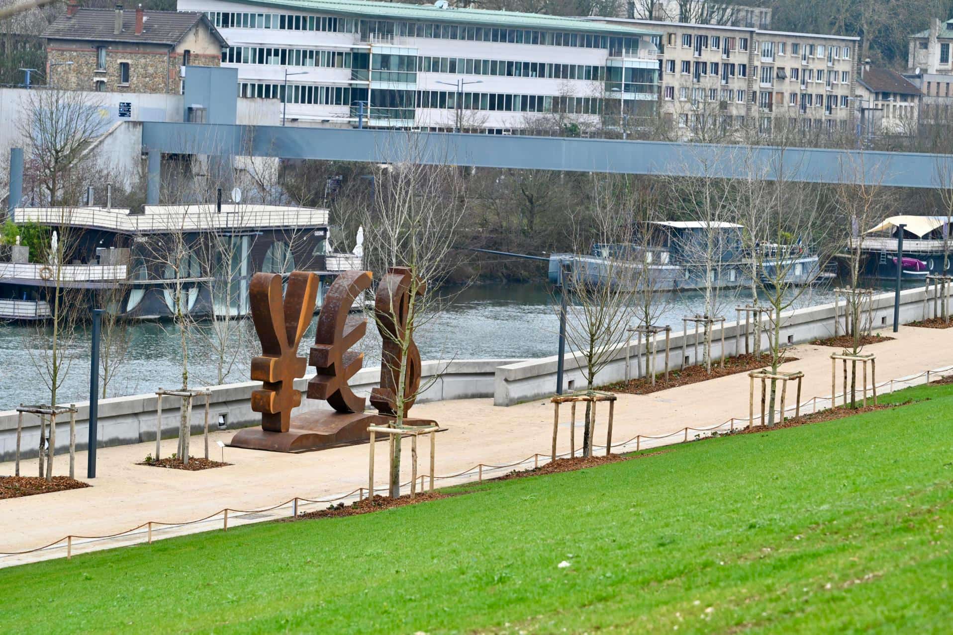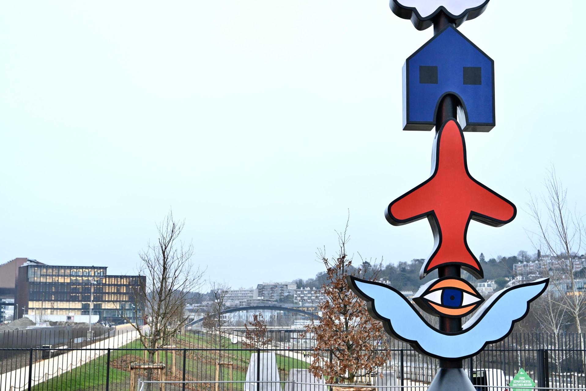La sculpture orne l’escalier monumental qui mène au jardin Bellini. Cette statue de bronze représente une femme ailée, les bras levés et les poings serrés, symbole de la défense de Paris en 1870 lors de l’invasion prussienne. Elle soutient un soldat blessé. En 1879, Rodin avait présenté le projet de cette œuvre au concours du Département de la Seine.