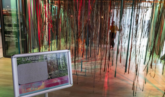 L’arbre à frôler est une invitation à traverser un dispositif interactif constitué de lianes végétales et sensitives, telle des extensions de l’environnement naturel qui les entourent.