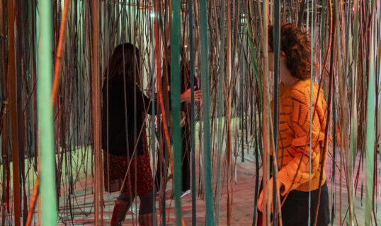 Un univers sonore et tactile constitué de lianes, excroissances poétiques révélées par l’interactivité …