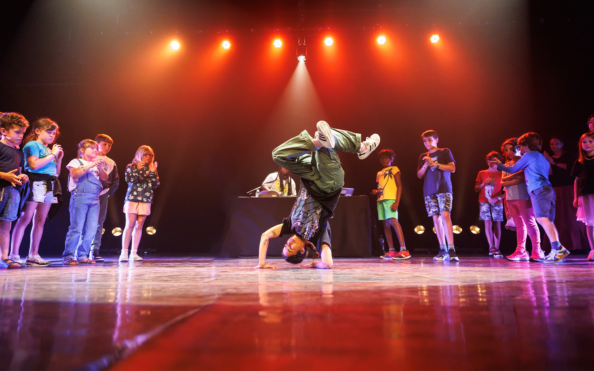 Ici, le public est au centre du spectacle : les corps s’expriment, les rythmes s’enchaînent, et chacun devient acteur de la fête ! Le hip-hop y déploie toute sa richesse, mêlant breakdance, beatbox et DJing dans une ambiance survoltée. Beats explosifs, mix électrisant et performances chorégraphiques se succèdent pour un moment à la fois vibrant et fédérateur.