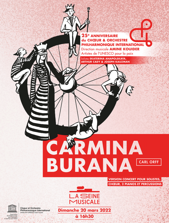 Choeur Philharmonique International, Artiste de l’UNESCO pour la paix, présente CARMINA BURANA de Carl Orff en Version concert pour solistes, choeur, 2 pianos et percussions