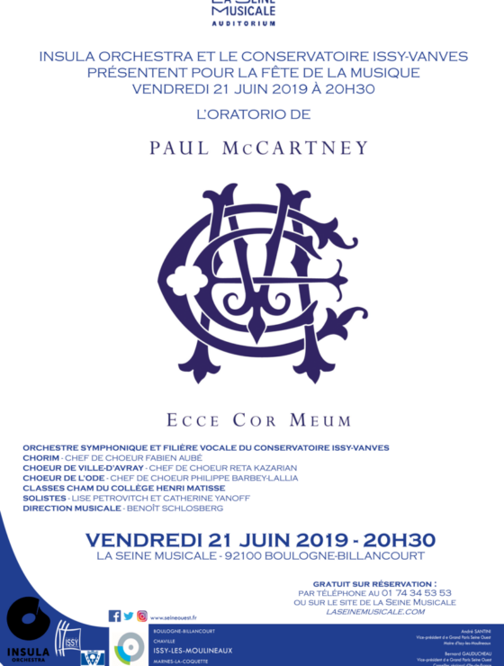 À l’occasion de la fête de la musique, Insula orchestra met à l’honneur la pratique musicale amateurs en invitant plusieurs ensembles des Hauts-de-Seine à se produire dans l’Auditorium de La Seine Musicale, avec Ecce Cor Meum, l’oratorio composé par Paul McCartney.
