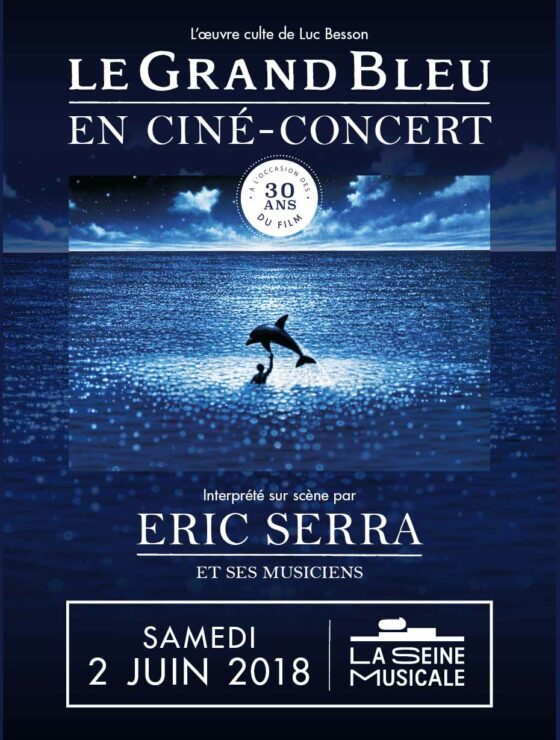 Film mythique de Luc Besson, Le Grand Bleu fêtera ses 30 ans le 11 mai 2018 ! Pour l’occasion, l’œuvre qui marquera le début de la collaboration à succès du duo Luc Besson–Eric Serra sera présentée pour la première fois en ciné-concert ! Retrouvez les deux apnéistes Jacques Mayol (Jean-Marc Barr) et Enzo Molinari (Jean Reno) projetés sur grand écran tandis qu’Eric Serra et ses musiciens interprèteront en live la bande-originale culte. Vendue à plus de 3 millions d’exemplaires dans le monde, elle a reçu un César, une Victoire de la meilleure musique de film et a inspiré des générations entières. Avec cette partition, Eric Serra nous livre une musique planante qui nous fait frissonner à chaque inspiration prise par les deux plongeurs. Le vendredi 11 mai 2018 à la Seine Musicale, retenez votre respiration et replongez dans les profondeurs du Grand Bleu avec Eric Serra et ses musiciens!