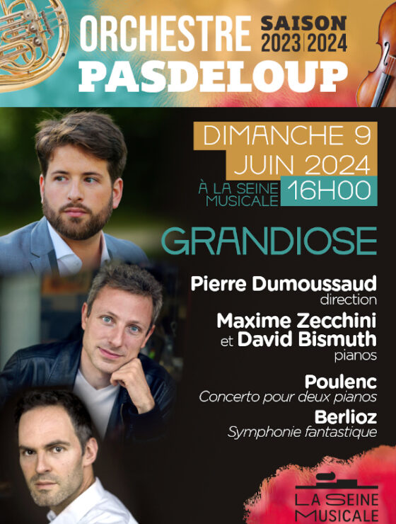 L’Orchestre Pasdeloup réunit deux références, Maxime Zecchini et David Bismuth, pour le très original Concerto pour deux pianos de Poulenc, œuvre virtuose et riche en couleurs et qui, avec sa grande énergie, répond à la grandiose Symphonie fantastique de Berlioz, véritable roman musical sous la direction de Pierre Dumoussaud, récompensé par la première Victoire de la Musique “Révélation chef d’orchestre” en 2022.