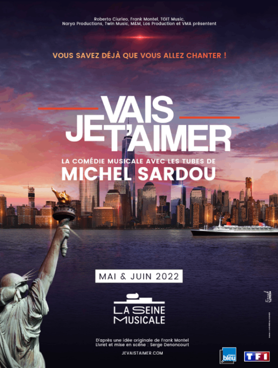La comédie musicale JE VAIS T’AIMER est le spectacle « évènement » qui réunit toutes les générations. Vous allez voyager de Paris à New York et à bord du mythique paquebot « France ».