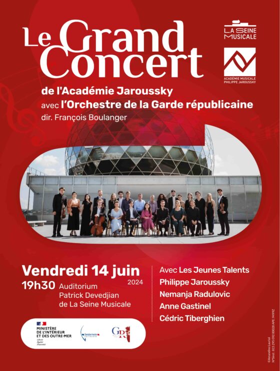 Sous la direction du colonel François Boulanger, le prestigieux Orchestre de la Garde Républicaine accompagnera les Jeunes Talents de la Promotion Brahms ainsi que leurs professeurs Philippe Jaroussky, Nemanja Radulovic, Anne Gastinel et Cédric Tiberghien.