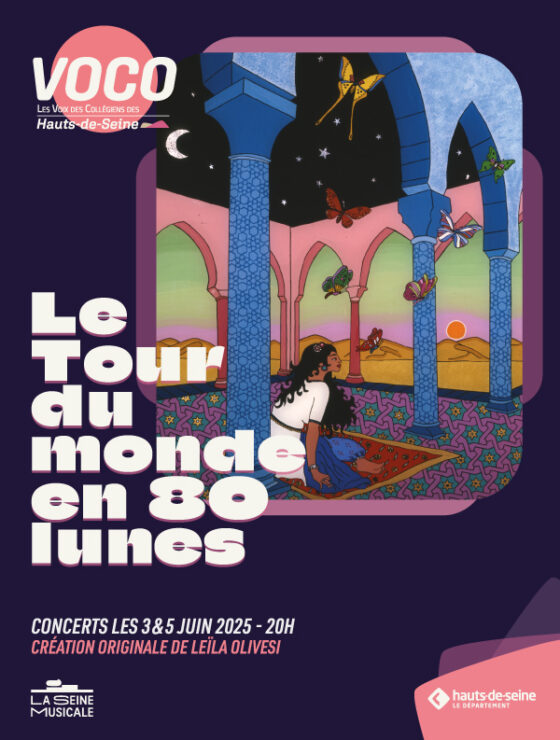 Sur des mélodies de la compositrice, pianiste et cheffe d’orchestre Leïla Olivesi – lauréate du prix Django Reinhardt 2022 – les 250 élèves du Chœur VOCO chanteront ces voyages fabuleux, accompagnés par un septet de musiciens solistes de haute voltige, aux timbres riches et variés, de la flûte au saxophone en passant par le piano, la guitare, la batterie et le cor anglais.
