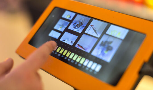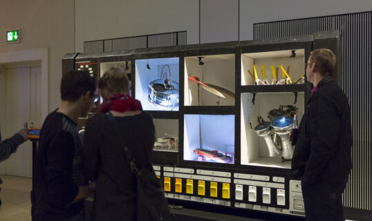 L’installation MR-808 est une œuvre de l’artiste et ingénieur robotique Moritz Simon Geist. La machine produit des sons de batterie grâce à des actionneurs mécaniques et des générateurs de sons physiques. Chacun peut programmer la MR-808 en direct à l’aide d’écrans tactiles et interagir avec d’autres personnes pour créer de la musique dans un processus collaboratif.