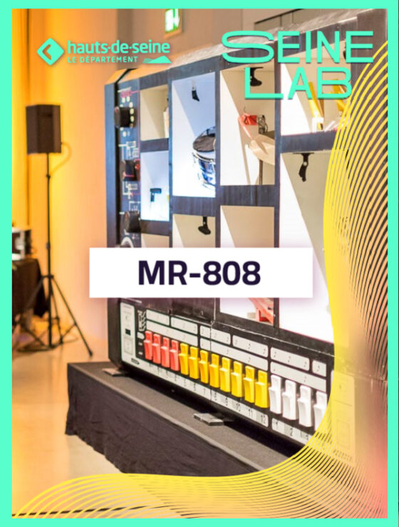 MR-808 est une boîte à rythmes robotique surdimensionnée, réplique de l’iconique boîte à rythmes électronique TR-808 de Roland des années 1980, dont la signature sonore, une grosse caisse puissante a jeté les bases d’innombrables succès de Marvin Gaye à Kanye West en passant par Taylor Swift, et est actuellement, sans aucun doute, l’un des sons les plus utilisés dans la musique pop.