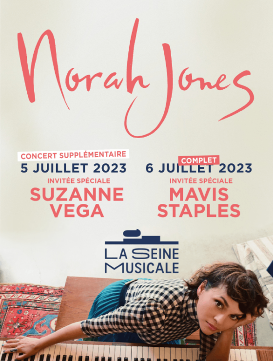 Après un concert complet en 2018, Norah Jones revient à La Seine Musicale les 5 et 6 juillet 2023. Avec la présence exceptionnelle de Suzanne Vega le 5 juillet et Mavis Staples le 6 juillet.