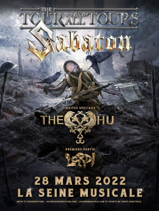 En raison de la situation sanitaire impactant l’organisation de sa prochaine tournée européenne, Sabaton s’est vu dans l’obligation de reporter les concerts prévus dans le cadre du « The Tour To End All Tours », dont celui initialement prévu à Paris à La Seine Musicale lundi 28 mars 2022. Ce concert est reporté au vendredi 21 avril 2023 au Zénith de Paris.