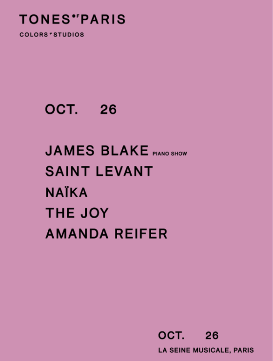 COLORS annonce ‘TONES’, un concept de série d’événements mondiaux qui débutera en octobre 2024 avec deux premières villes : Paris et New York. Paris sera la deuxième étape de la tournée, du 21 au 26 octobre, avec La Seine Musicale au cœur de l’événement. Conçue en collaboration avec les créatifs locaux et la communauté parisienne, la programmation réunit un large éventail de talents français et internationaux, dont JAMES BLAKE, SAINT LEVANT, NAIKA, et bien d’autres encore dans le cadre d’un programme plus vaste à l’échelle de la ville.